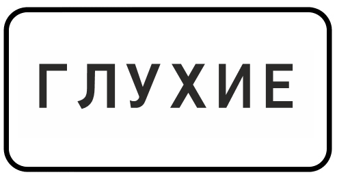 8.15.1 «Глухие пешеходы» — табличка устанавливается со знаком «Пешеходный переход» в зонах повышенной вероятности появления людей с нарушениями слуха — как правило, вблизи школ и интернатов для слабослышащих. Табличка требует от водителей повышенного внимания.